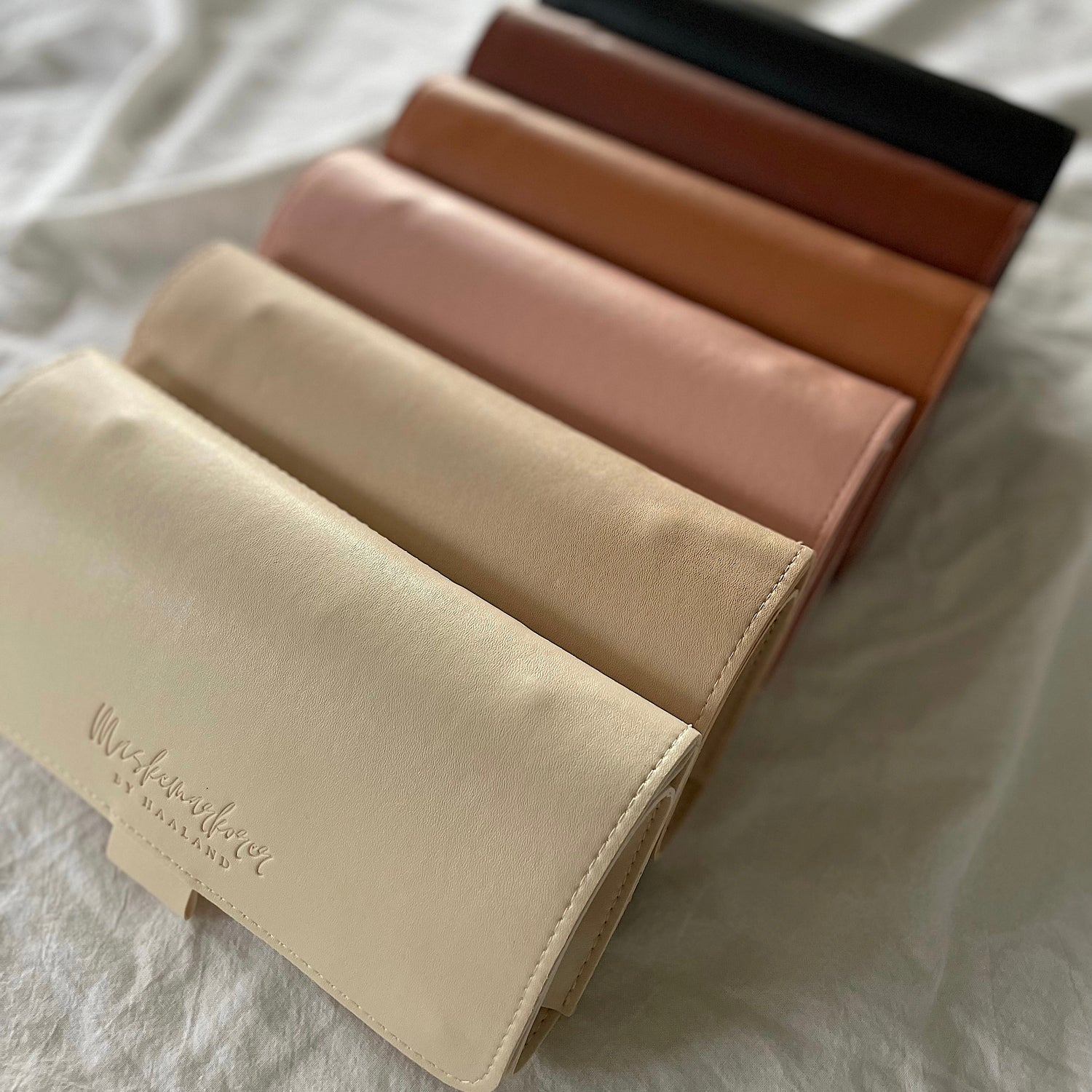 Dette praktiske etuiet til strikkepinner i PU skinn kommer i 6 forskjellige farger.